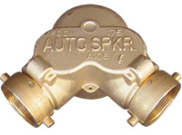 - Two-way inlet brass* connection features double-clapper body with female hose thread swivel inlets and female NPT outlets